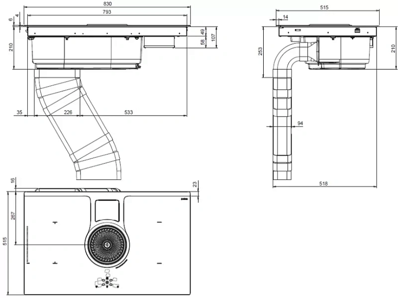 Индукционная варочная панель Elica, разработанная дизайнером Фабрицио Криса (FABRIZIO CRISÀ), выглядит как настоящее художественное изделие и была удостоена ряда наград в 2018 году. Встроенная вытяжка с угольным фильтром работает в режиме рециркуляции воздуха. Варочная поверхность монтируется заподлицо со столешницей и не имеет рамки.
