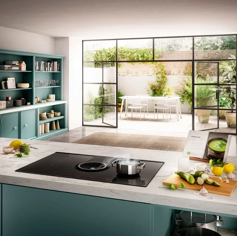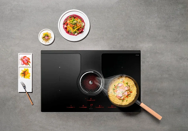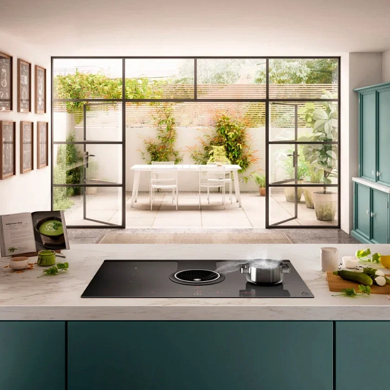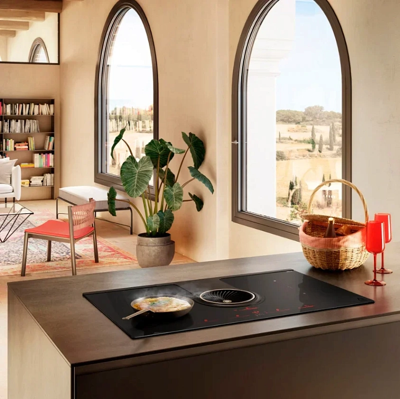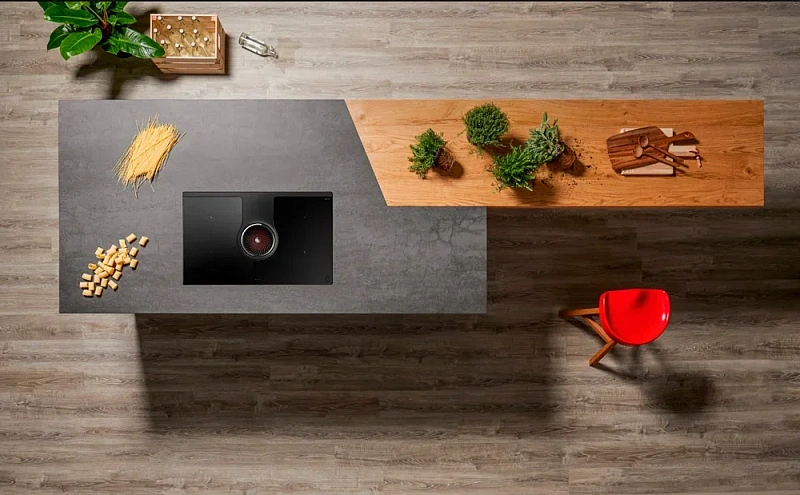 Панель работает по технологии индукционного нагрева (Induction), что стоит учитывать при выборе. Ее поверхность выполнена из стеклокерамики, цвет — матовый чёрный. Благодаря рамке конструкция прочно фиксируется на столешнице и отделена от рабочей зоны.