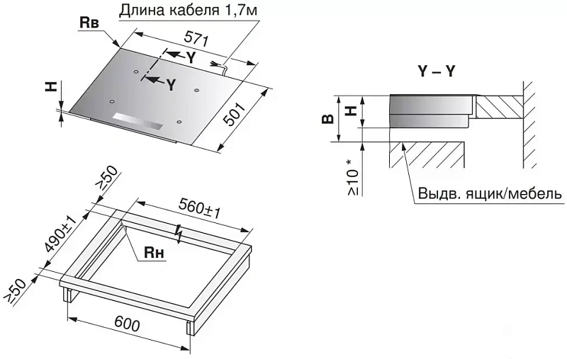 - • Размеры ниши для встраивания (Ш х Г), см: 56-56.1х49-49.1
