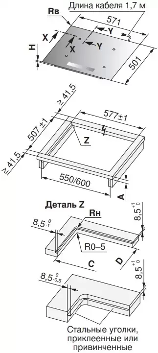 - Встраивание вровень и над столешницей