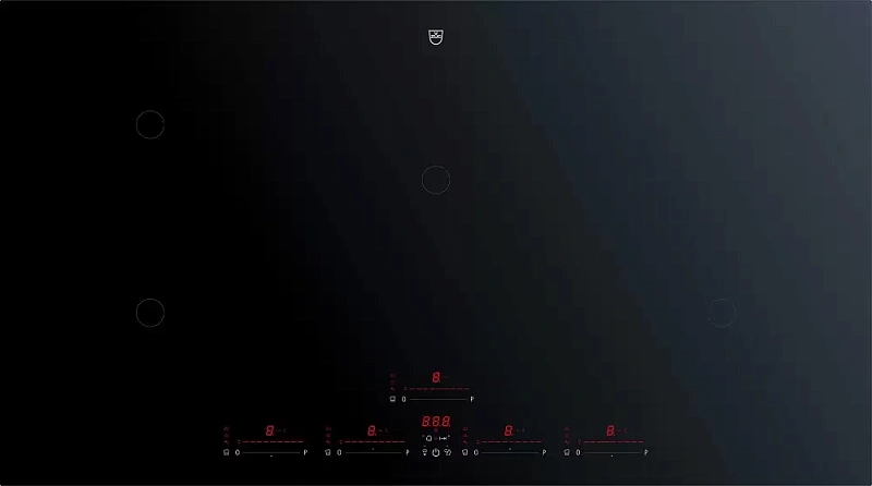 Эта индукционная плита с пятью зонами нагрева отлично подойдёт тем, кто часто готовит для большой семьи или любит звать друзей на ужины. У каждой конфорки есть своё управление — удобно, когда нужно одновременно готовить несколько блюд. При необходимости рядом расположенные зоны легко объединяются в одну — особенно удобно, если используете крупную посуду. Устройство можно подключить к системе V-ZUG Home через Bluetooth, что позволяет контролировать работу плиты дистанционно. Таймер позволяет задать как время отключения, так и отложенный старт — полезно, если не хочется всё время находиться у плиты. При наличии вытяжки с технологией OptiLink она сможет сама регулировать мощность в зависимости от того, насколько активно идёт приготовление. Важно учитывать: прибор продаётся без вилки и требует подключения квалифицированным специалистом.