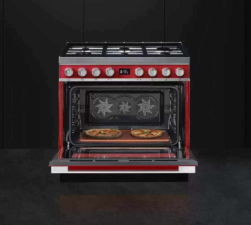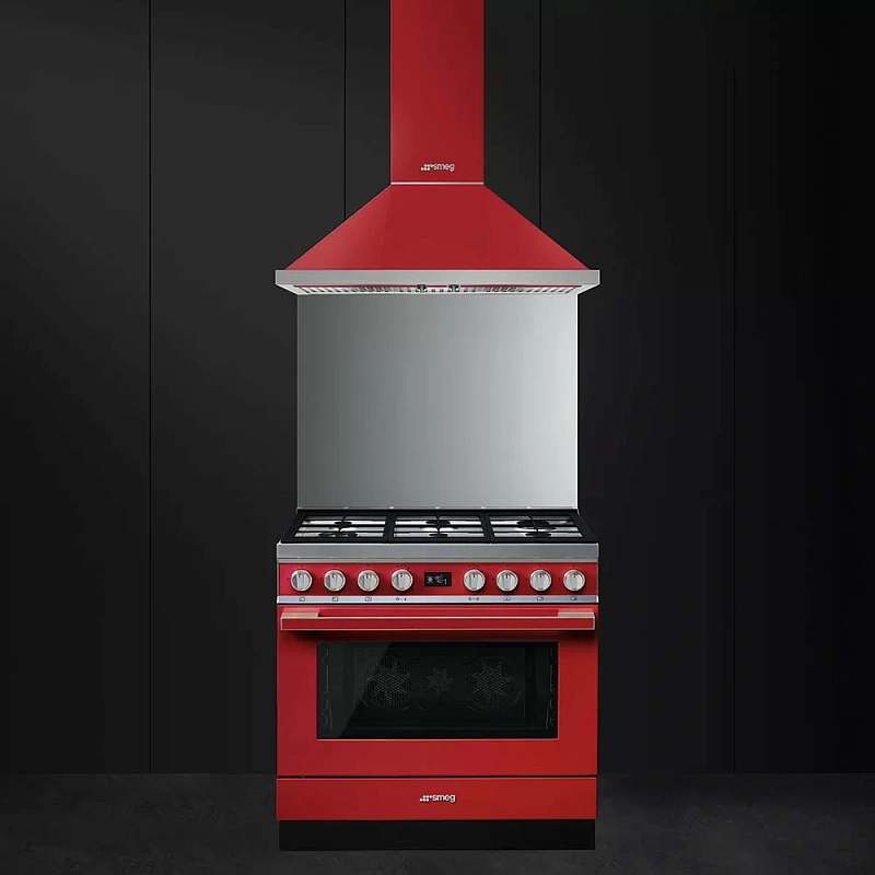 Варочный центр Smeg Portofino в глубоком красном оттенке создан для настоящих поклонников итальянского качества. Удобный LCD-дисплей помогает легко настраивать режимы и контролировать процесс готовки. Прочные чугунные решётки без проблем выдержат даже тяжёлую посуду, например, утятницу. Функция паровой очистки делает уход за прибором максимально простым.