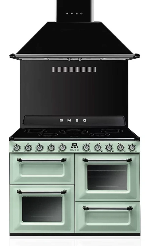 Многофункциональное устройство от Smeg представлено в оригинальном пастельно-зелёном цвете. Каждая духовка варочного центра оборудована тангенциальной системой охлаждения и внутренней подсветкой. Варочная поверхность включает пять индукционных конфорок с индикацией активной зоны нагрева.