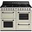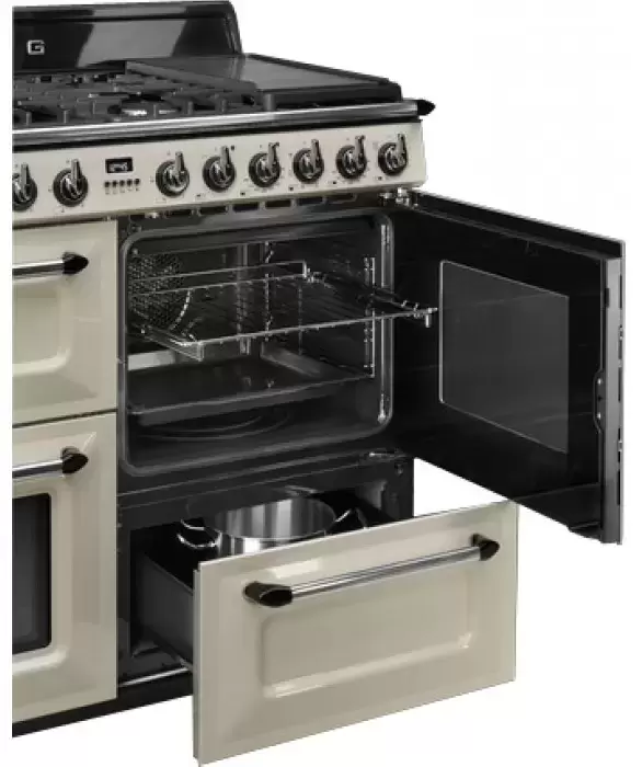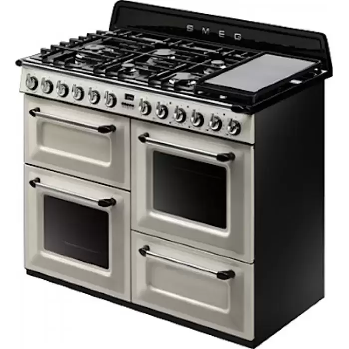 Комбинированная плита Smeg TR4110P удачно впишется как в интерьер городской квартиры, так и в кухню загородного дома. Её корпус выполнен в кремовом цвете — он легко сочетается с техникой и мебелью аналогичных тонов, а на контрасте может даже стать акцентом. Управление осуществляется через простую электронную панель: выбрать нужный режим или установить температуру можно без лишних усилий. Основные рабочие параметры отображаются на дисплее. Поворотные переключатели не только удобны, но и органично дополняют внешний вид.