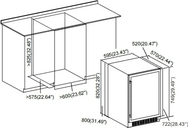 - • Размеры ниши для встраивания (ВxШxГ), см: 82.5х60х57.5