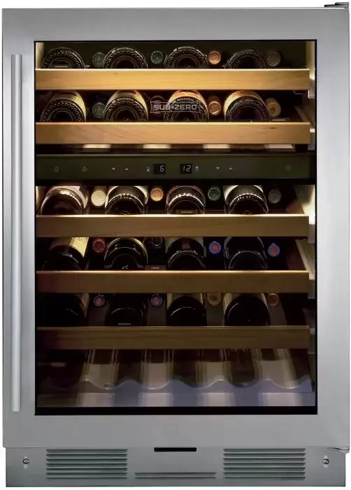Винный шкаф SUB-ZERO станет отличным выбором как для начинающих коллекционеров, так и для тех, кто ищет небольшое решение для хранения вина в офисе. Его вместимость — до 46 бутылок объёмом 0,75 л при использовании всех полок, входящих в комплект. Модель оснащена двумя отдельными температурными зонами, что позволяет устанавливать подходящий режим под разные виды вина. Панель управления расположена по центру и снабжена цифровым дисплеем — с ним удобно следить за внутренним климатом. Шкаф можно встроить в нишу или поставить отдельно — благодаря компактному формату он гармонично впишется даже в стандартную кухонную мебель. Классический внешний вид подчёркивают корпус и дверная рамка из нержавеющей стали. Дверца оборудована стеклопакетом с защитой от ультрафиолетовых лучей, а внутреннюю часть освещают светодиоды — бутылки всегда хорошо просматриваются.