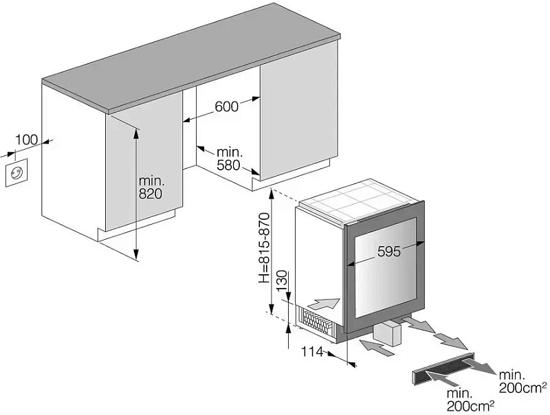 - • Размеры ниши для встраивания (ВxШxГ), см: 82-87х60х58