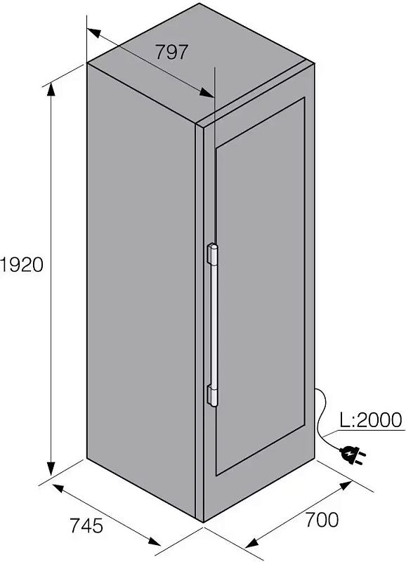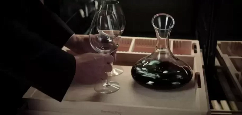 Шкаф вмещает до 190 бутылок объёмом 0,75 л, которые размещаются на деревянных полках с плавно выдвигающимися телескопическими направляющими. Дверца выполнена из качественного стекла с защитой от ультрафиолета, чтобы уберечь вино от воздействия солнечных лучей. Сенсорный дисплей помогает считывать этикетки с бутылок, сохраняет информацию и позволяет удобно вести учёт коллекции.