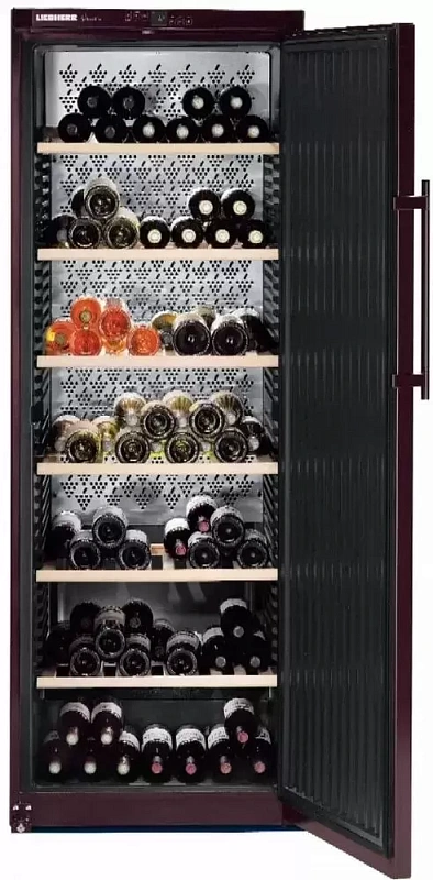 Винный шкаф Liebherr WK 4676 с электронным управлением — отличный вариант для тех, кто хочет грамотно организовать большую коллекцию вина. Внутри предусмотрено семь отделений, в которых свободно помещается до 193 бутылок (объёмом по 0,75 л каждая). Лаконичный корпус черного цвета легко впишется в современный интерьер. Устройство оборудовано металлическими полками, фильтром из активированного угля для поддержания свежего воздуха внутри и дверцей, которую при необходимости можно перевесить.