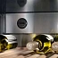 Корпус из чёрной стали (серия HardLine) дополняется дверью с двухслойным тонированным стеклом. Температура внутри настраивается с помощью панели управления MagicEye с электронным дисплеем — можно выбрать значение от +5 до +22 °C, что делает шкаф подходящим для хранения вин разных типов: белых, красных и розовых. Встроенный фильтр FreshAir с активированным углём очищает воздух, исключая попадание посторонних запахов внутрь.
