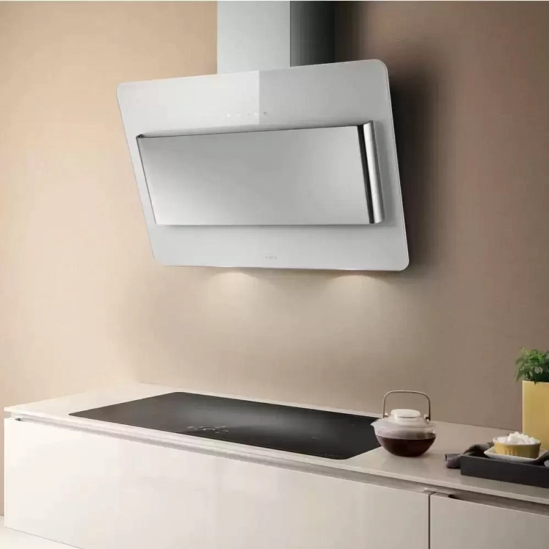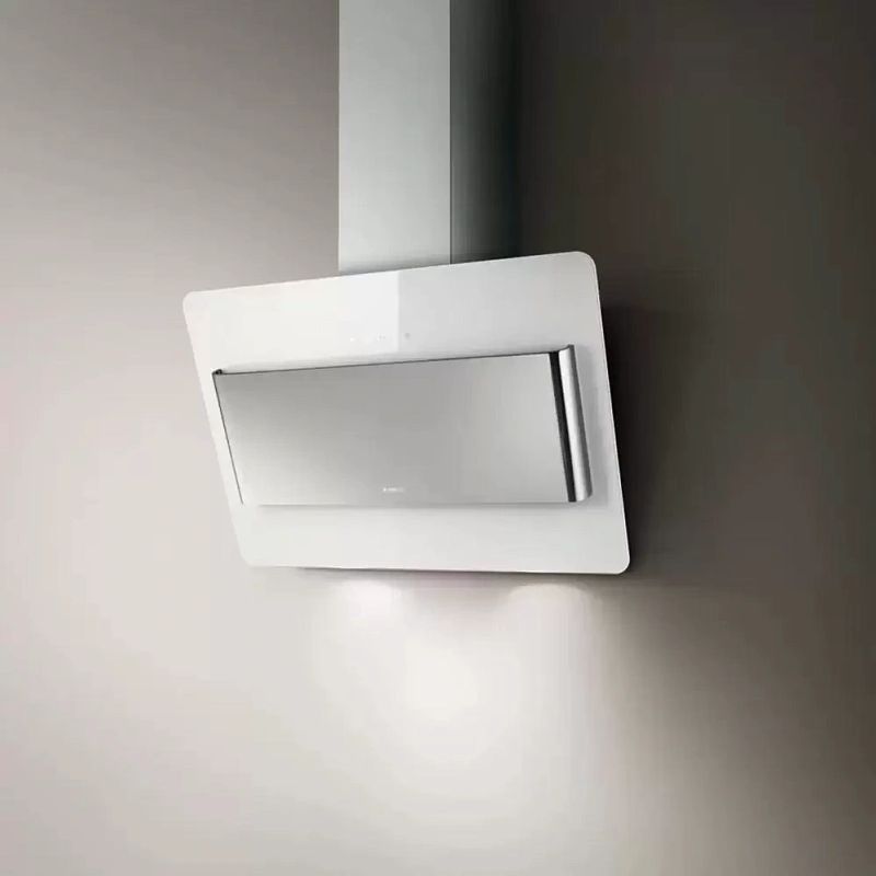 Вытяжка от Elica сочетает в себе мощную работу и стильный внешний вид. Её лаконичный дизайн с белой стеклянной панелью удачно дополняется вставками из нержавеющей стали. Такое эстетичное оформление легко впишется в большинство интерьеров.