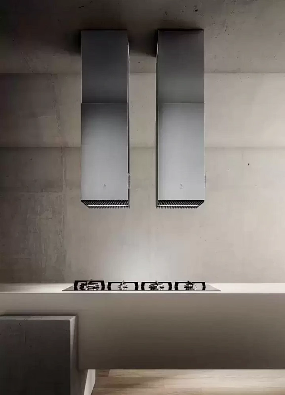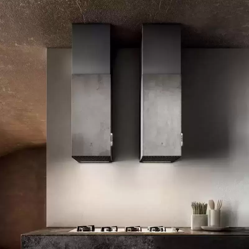 Настенная вытяжка — классический вид кухонного воздухоочистителя. Её оригинальный внешний вид с отделкой под бетон отлично впишется в современные интерьеры, особенно в стиле лофт.