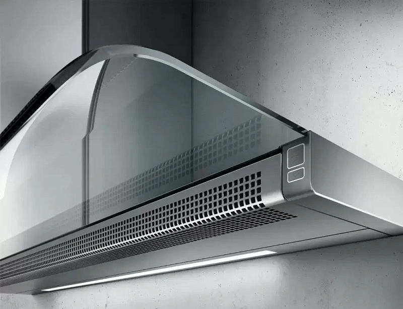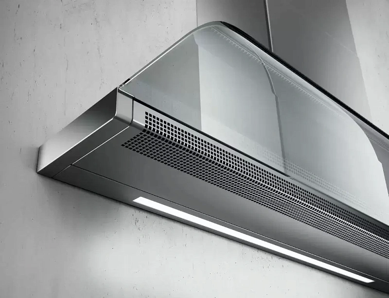 Прозрачный стеклянный козырёк защищает корпус вытяжки от жира и капель. Устройство отличается высокой мощностью и эффективно справляется с очисткой воздуха на кухне. Встроенный индикатор загрязнения фильтров поможет вовремя заметить, когда требуется их чистка или замена. Управление и уход за моделью не вызывают трудностей.