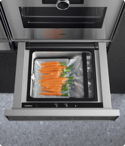 Вакуумные шухляды обеспечивают оптимальное вакуумирование продуктов для длительного хранения, маринования или подготовки к Sous-Vide. Управление осуществляется просто и эргономично, с четырьмя степенями вакуума и гигиеничным внутренним пространством.