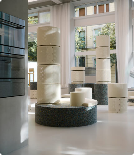 В сотрудничестве с Fischbacher 1819 и дизайн-студией BUREAU, компания V-ZUG представила инсталляцию Continuum в рамках Zurich Design Weeks 2025. Проект предлагает новый взгляд на вторичное использование материалов, рассматривая их не как ограничение, а как фундамент для дизайна будущего.