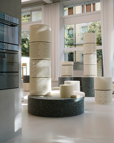Инсталляция размещена во флагманском пространстве V-ZUG Studio Zurich и переосмысливает привычные подходы к использованию материалов. Здесь сочетаются элементы бытовой техники, вышедшей из эксплуатации, восстановленный текстиль и переработанная промышленная пена. В результате создаётся пространство, которое одновременно выглядит эстетично и побуждает задуматься о жизненном цикле вещей.